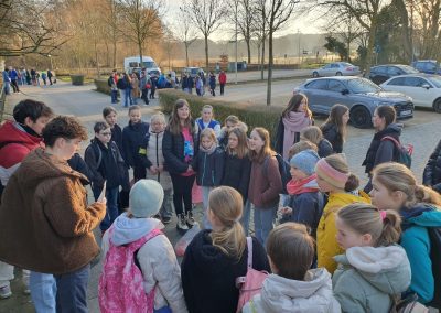 Auch in diesem Jahr beteiligte sich die Jahrgangsstufe 5 des Werner-Jaeger Gymnasiums wieder an der europaweiten Aktion „Let’s clean up Europe“. Bei herrlichem Sonnenschein trafen sich die 110 Schülerinnen und Schüler mit ihren Klassenlehrern am Infozentrum an den Krickenbecker Seen und dem Naturschutzhof, um vor der Sammlung ihr Umweltwissen zu beweisen. Oberstufenschüler eines Geographieleistungskurses organisierten an vier Stationen klassenweise die Umweltchallenges, bei denen unter anderem Stromverbräuche eingeschätzt, Müll richtig sortiert und CO2-Ausstoß verschiedenen Verkehrsmitteln zugeordnet werden musste.