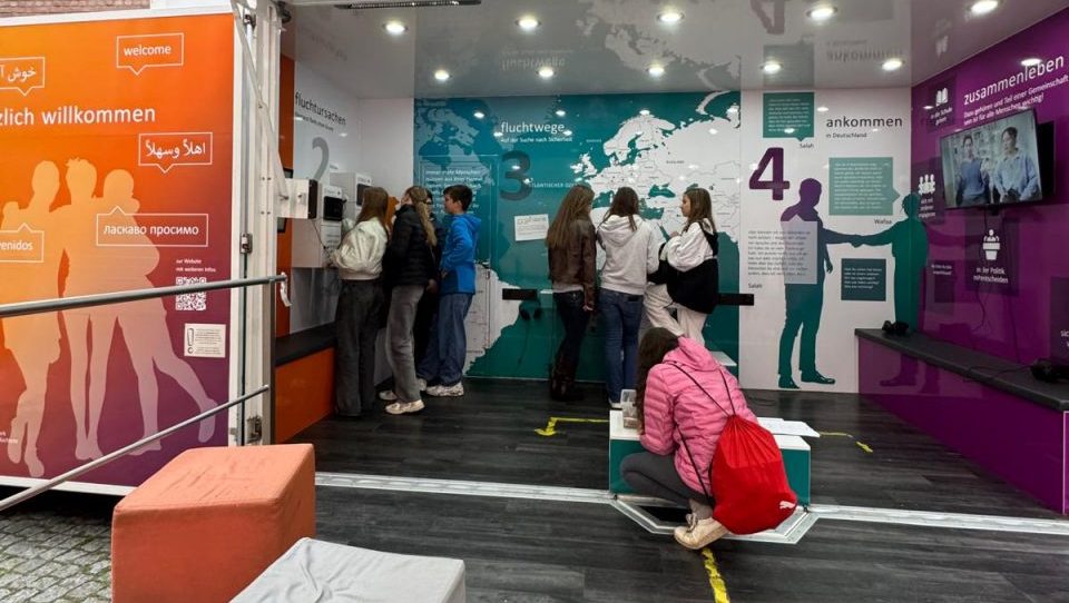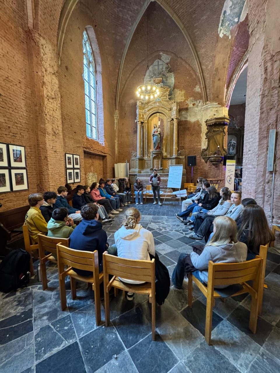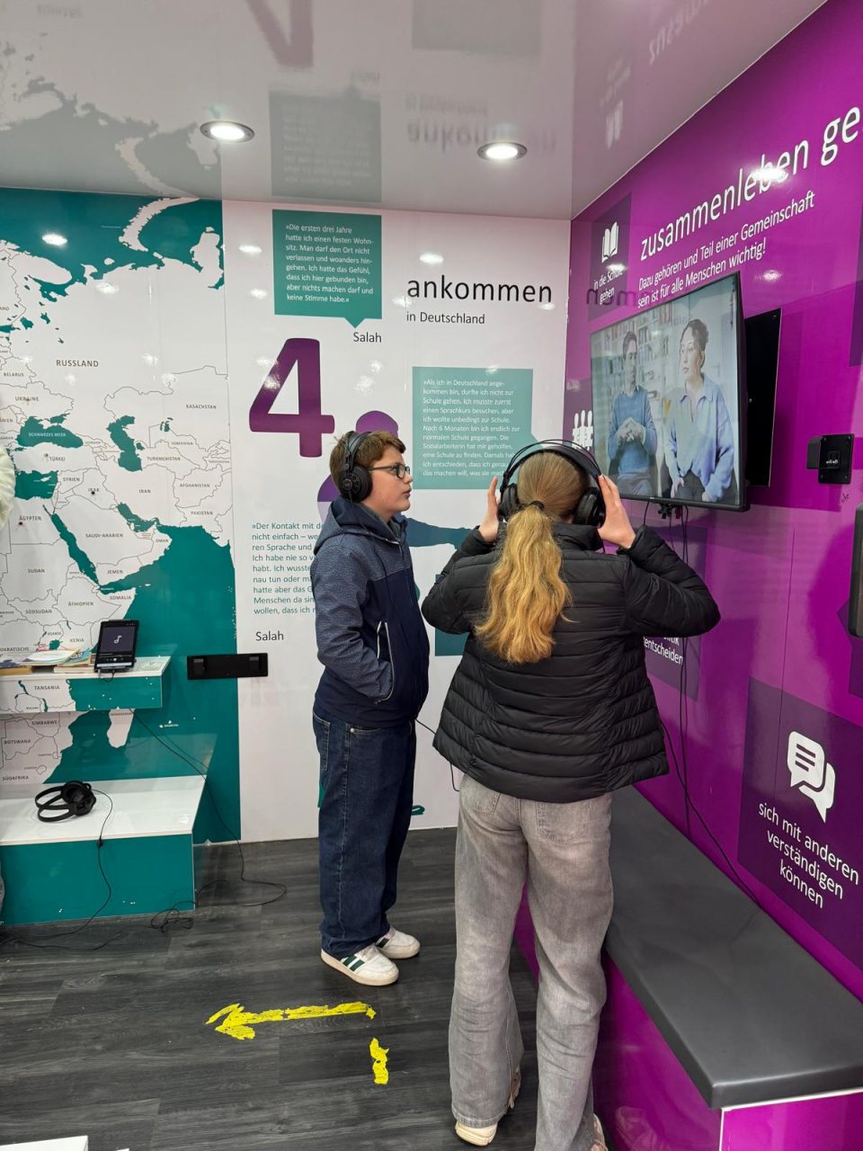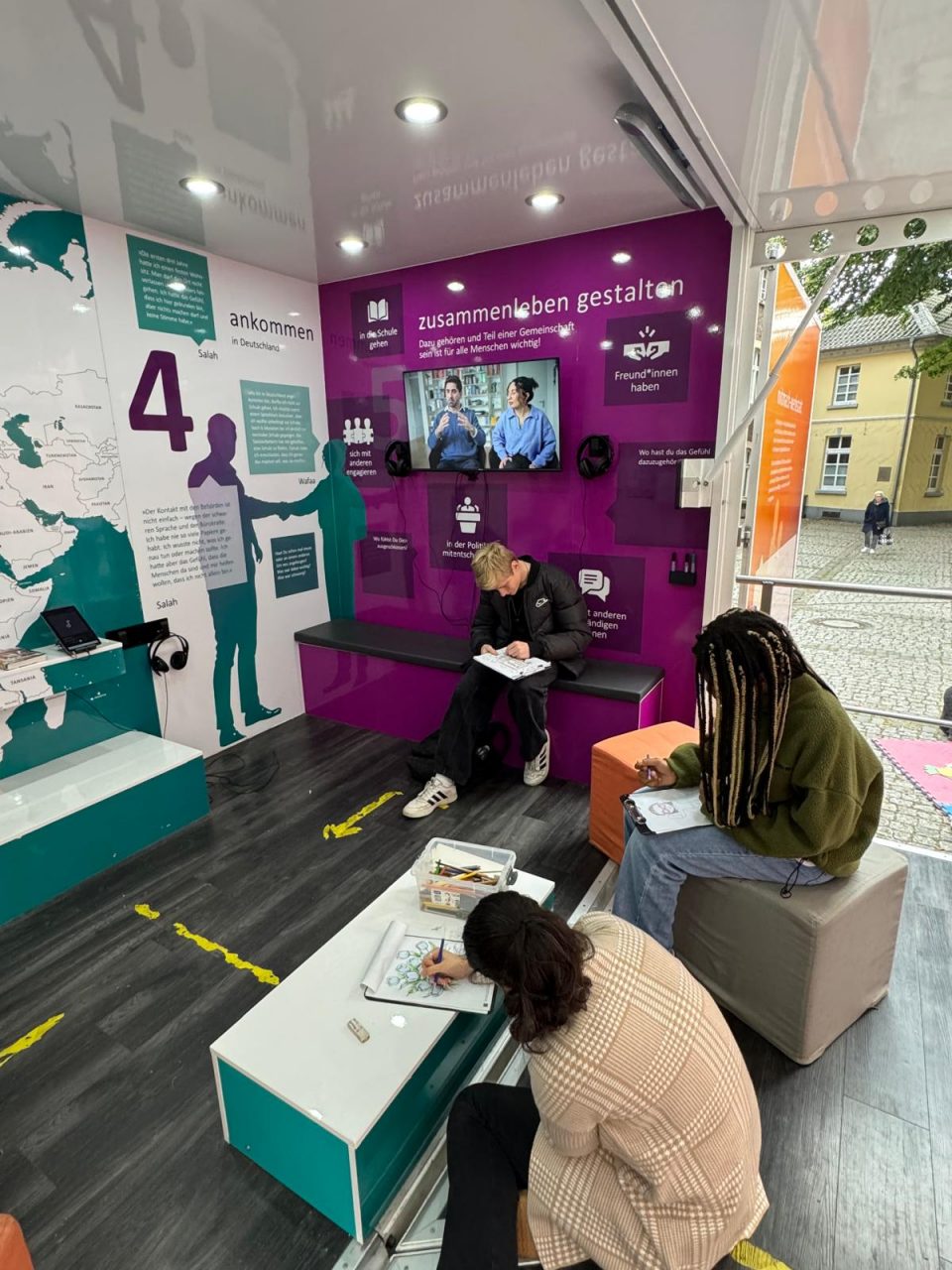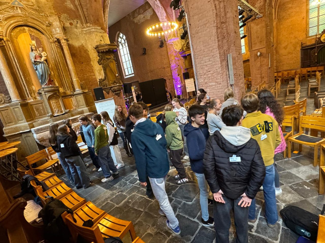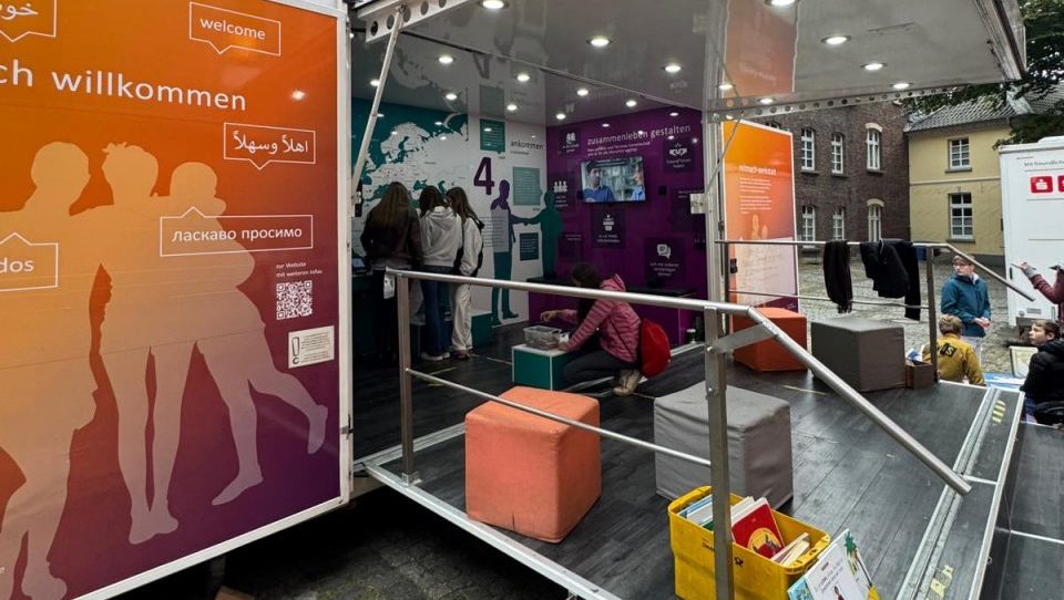 Knapp 90 Schülerinnen und Schüler des Werner-Jaeger-Gymnasiums haben sich heute in der Alten Kirche Lobberich mit den Themen Flucht, Ankommen und neue Heimat auseinandergesetzt. Anlass war das Kolping Road Mobil, das als mobiles Bildungsangebot seit einigen Jahren im ganzen Bundesgebiet unterwegs ist. Mit interaktiven Methoden und alltagsnahen Fragestellungen bringt es die Themen Flucht und Migration direkt zu jungen Menschen – an Schulen, in Jugendzentren oder an öffentlichen Orten.