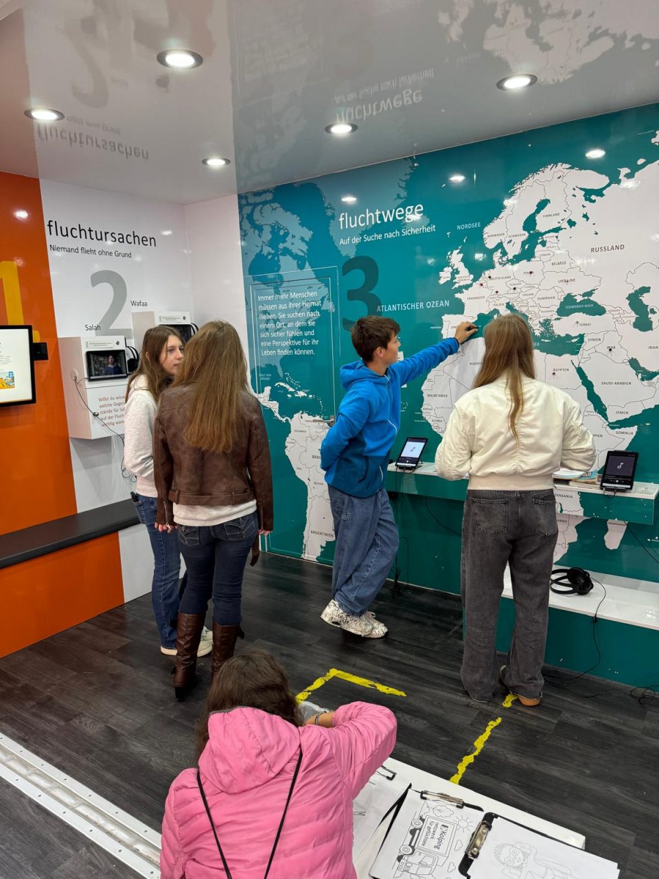 Im Austausch mit dem Team des Kolping-Netzwerks Flucht & Migration setzten sich die Jugendlichen vor allem mit zwei Kernfragen auseinander: Warum müssen Menschen überhaupt fliehen? Und wie viele Menschen sind derzeit weltweit auf der Flucht? Dabei zeigten die Schülerinnen und Schüler großes Interesse, stellten kritische Fragen und diskutierten engagiert über Ursachen, Zusammenhänge und Auswirkungen von Fluchtbewegungen.