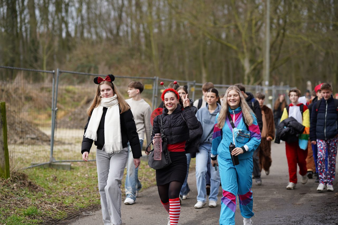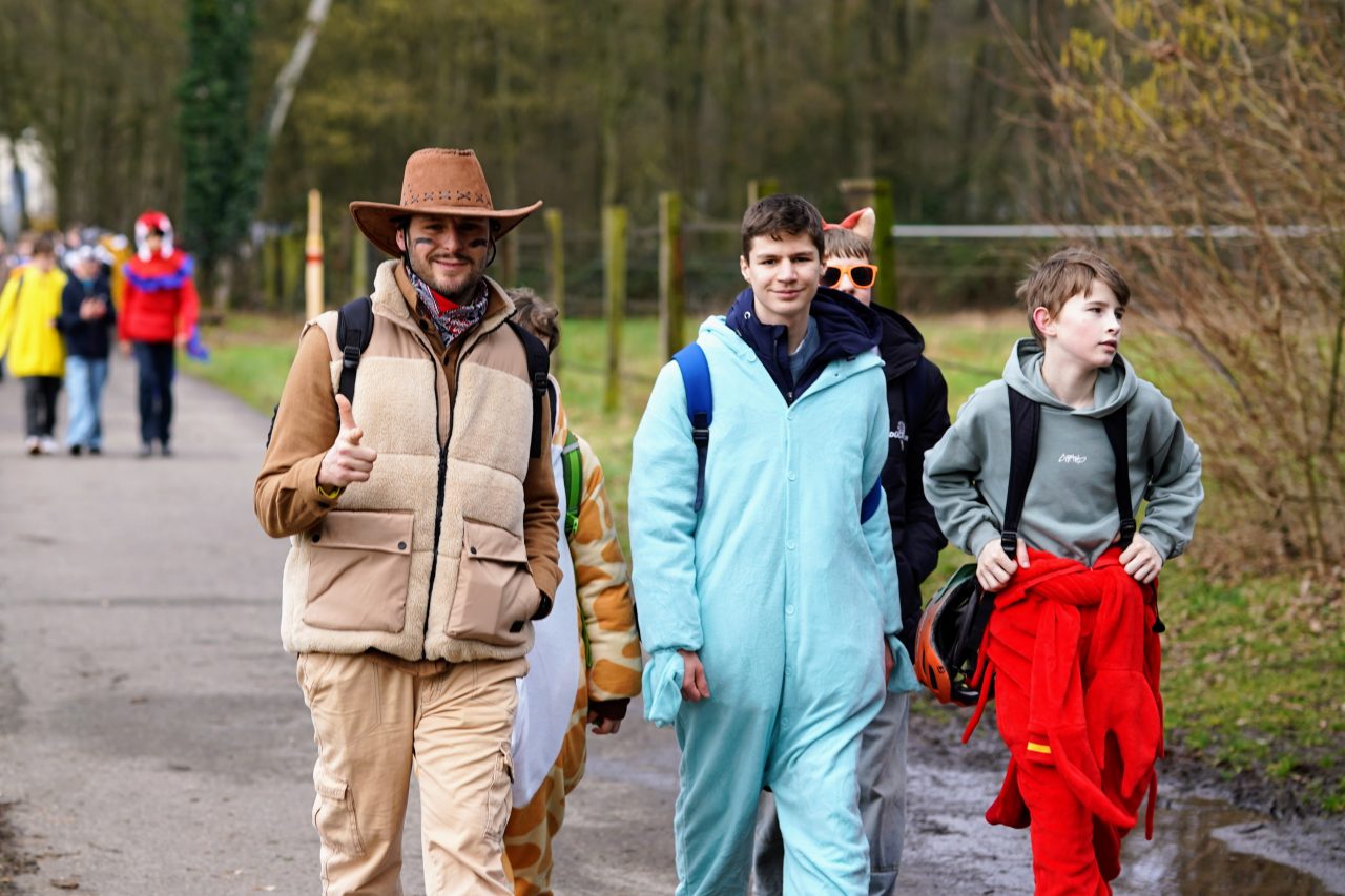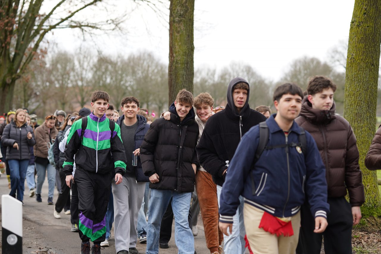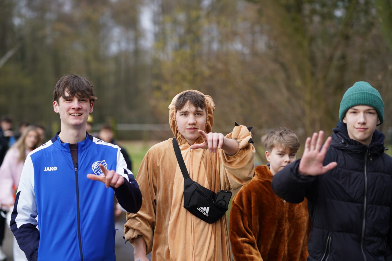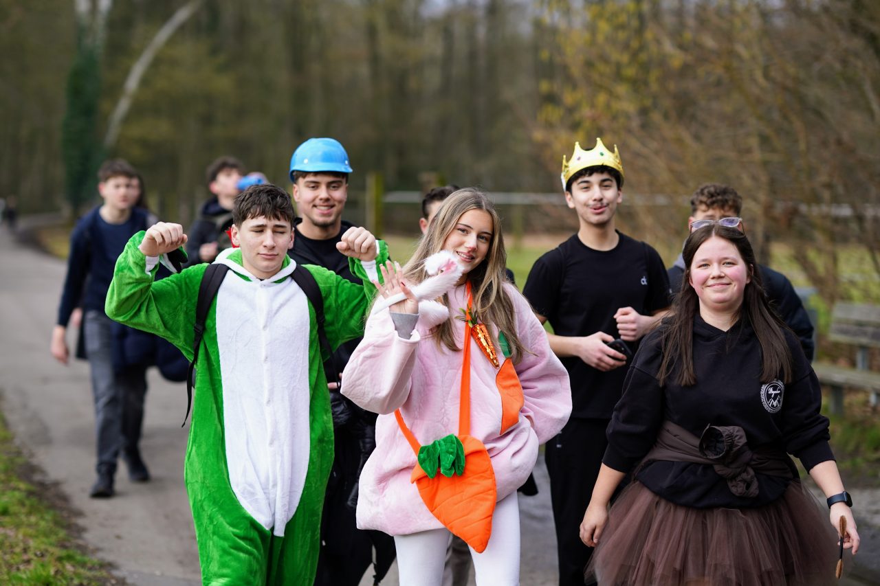 Am Karnevalsfreitag fand an unserer Schule unter der Leitung des Schulvereins die traditionelle karnevalistische Spendenwanderung statt: Die Schülerinnen und Schüler der Klassen 5 bis Q1 wanderten verkleidet rund um die Nettetaler Seen eine 11-km-Runde oder eine 14,5-km-Runde. Mit viel Spaß in den Kostümen und echtem Teamgeist setzten sie sich motiviert für gute Zwecke ein.