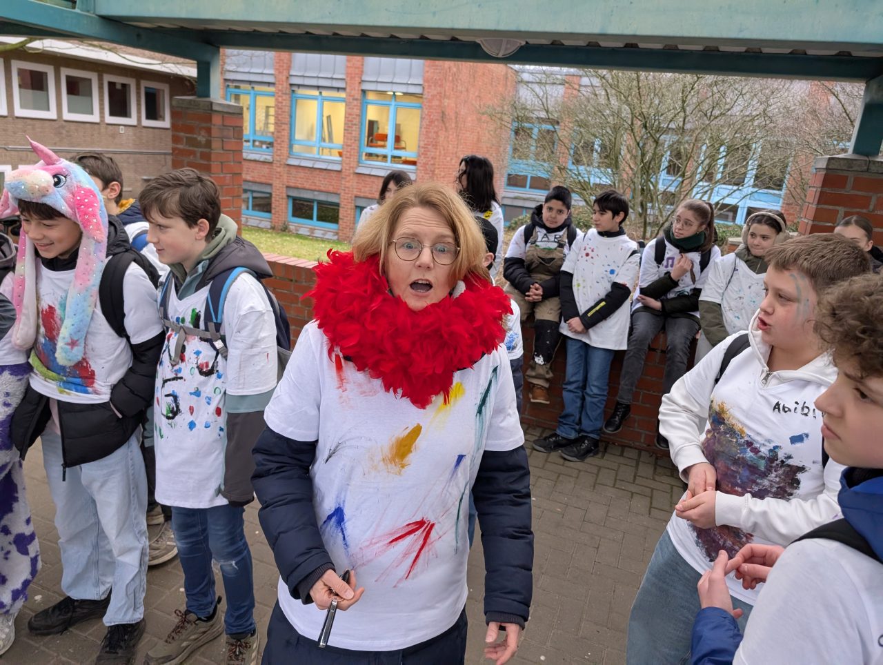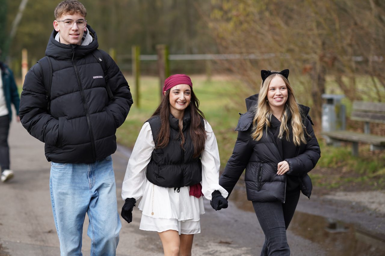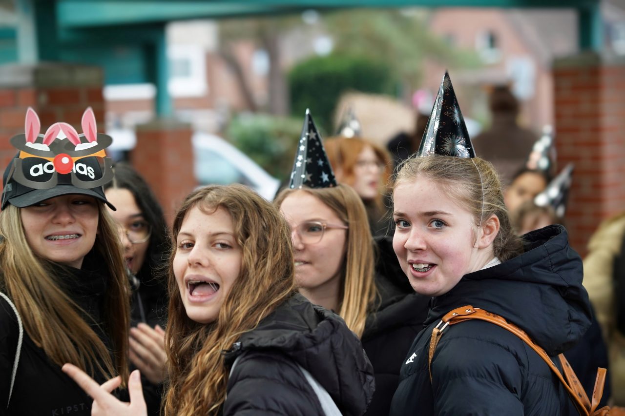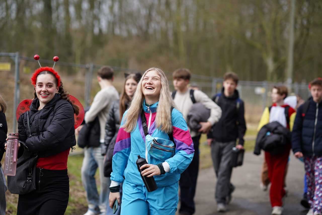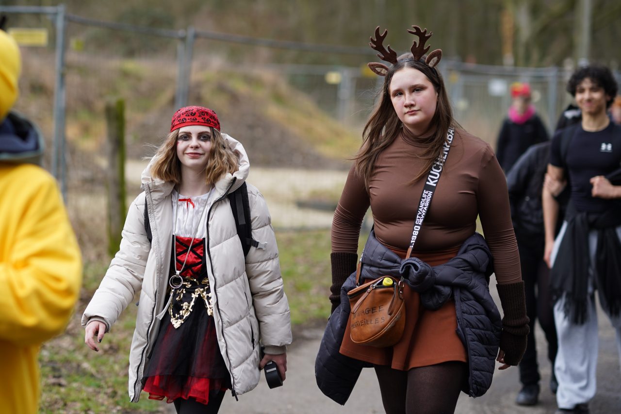 Am Karnevalsfreitag fand an unserer Schule unter der Leitung des Schulvereins die traditionelle karnevalistische Spendenwanderung statt: Die Schülerinnen und Schüler der Klassen 5 bis Q1 wanderten verkleidet rund um die Nettetaler Seen eine 11-km-Runde oder eine 14,5-km-Runde. Mit viel Spaß in den Kostümen und echtem Teamgeist setzten sie sich motiviert für gute Zwecke ein.