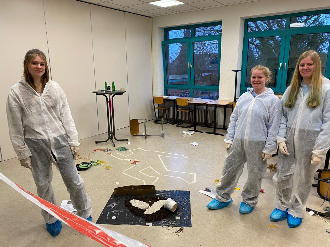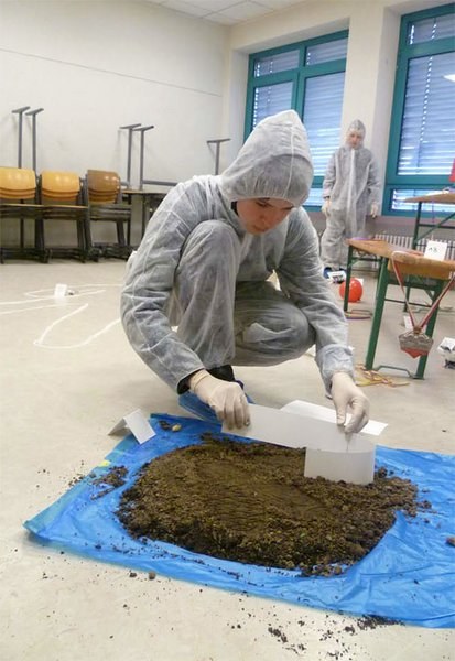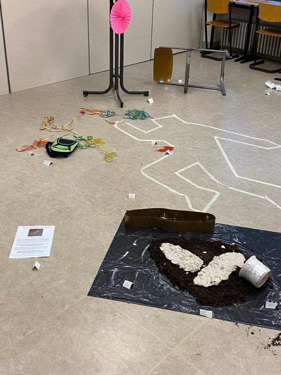 … ist ein fächerübergreifendes einwöchiges Projekt für unsere neunten Klassen, das bereits seit mehr als zehn Jahren immer mit (Vor-)Freude von den Schülerinnen und Schülern zu Beginn des zweiten Halbjahres wahrgenommen wird. Ziel der Projektwoche ist neben dem fachlichen auch das soziale Lernen, da die Lernenden nur als Team und nach gelungener Kooperation der einzelnen Arbeitsbereiche den von einem Konsortium von Lehrkräften konstruierten selbsterdachten Kriminalfall lösen können.
